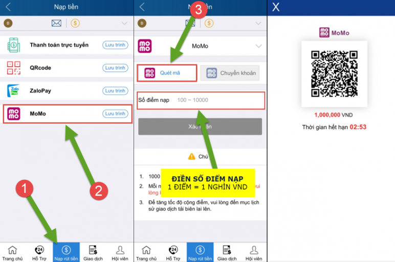 Bước 5: Điền những thông tin nạp tiền.